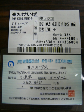ずっと狙っとった「高額配当的中証明書」、ついにゲットしたぜよ!
