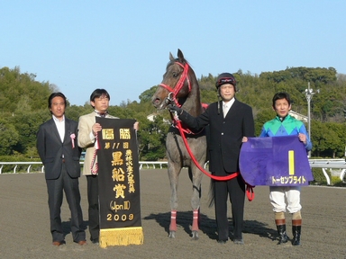 高知のサラブレッドが他場の重賞を制するのは、97年のイージースマイル(佐賀の花吹雪賞)、昨年のスペシャリスト(笠松のオグリキャップ記念&福山グランプリ)に続いて4度目の快挙かな?