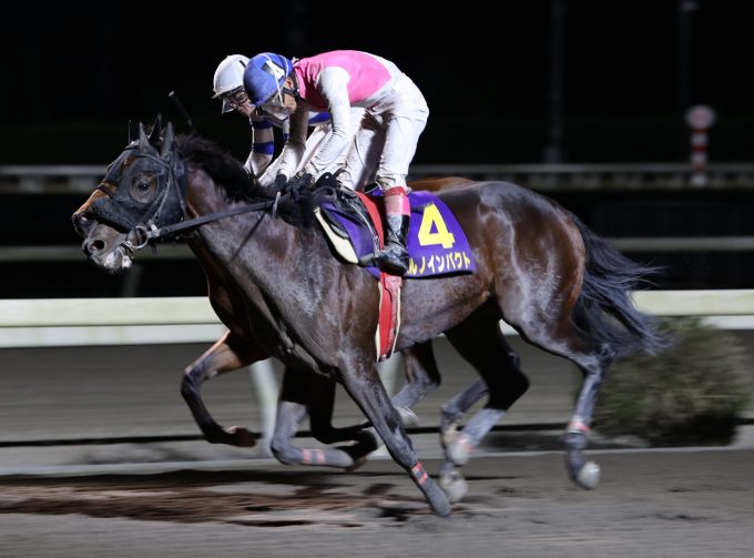 単勝1番人気は、前走A級のマイル戦で勝利をおさめた高知優駿馬ハルノインパクト(西川敏弘騎手)でした。
