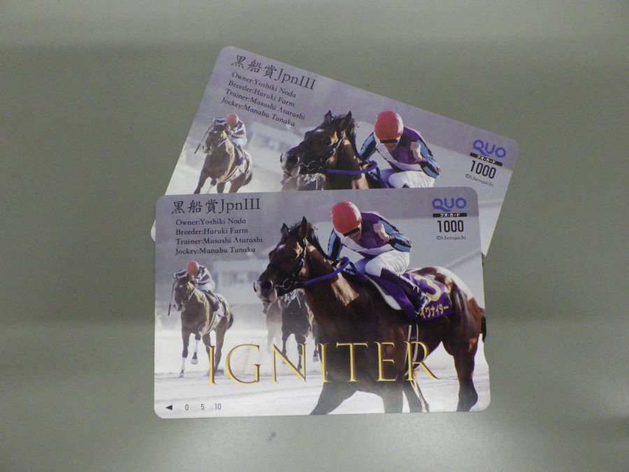 2022年3月16日「第24回黒船賞」を制したイグナイター号の管理調教師である新子雅司調教師、高知競馬の雑賀正光調教師のご厚意により勝利記念オリジナルQUOカードをご提供いただきましたので抽選で3名様にプレゼントいたします。