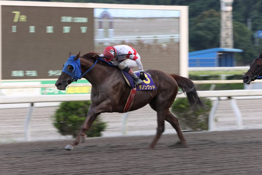 レースは、ダノンジャスティス(上田将司騎手)がハナに立ち、ブラックランナー(宮川実騎手)が2番手、3番手にはダノングッド(多田羅誠也)と続き、やや縦長の展開で進みました。3~4コーナーでブラックランナーが抜け出して、最後の直線を迎えると、内からダノングッドが猛然と追い込み、ゴール手前でブラックランナーを交わし、1馬身差をつけて勝利しました。