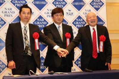 2012年2月2日、東京都の目黒雅叙園で、「NARグランプリ2011」として2011年に地方競馬で活躍した馬及び厩舎関係者が表彰されました。高知関係者の画像を、川崎競馬倶楽部の小川さんが送ってくれました。ありがとうございます。