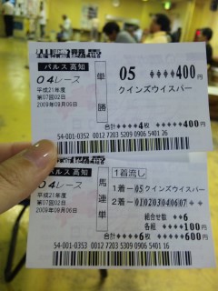 馬単が6000円もついて、夜さ恋ナイターでの負けが、ちょっぴり癒された!