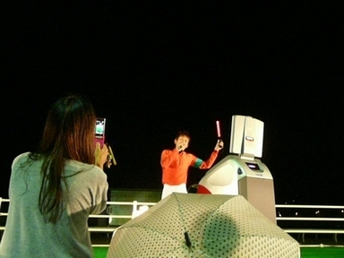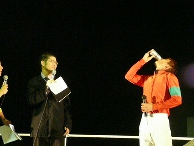 ステージに上がった永森騎手は、股間からおもむろにマイクを取り出した。