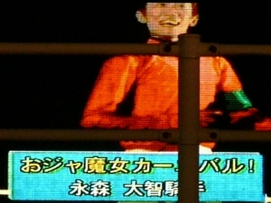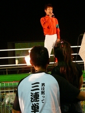 「男は黙って三連単Tシャツ」が妙に似合う嬉騎手に見守られて、永森騎手は見事にアニソンを歌い上げた。