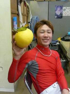 「今日は走る馬がそろっていたんですよ。馬のおかげです」と、どこまでも謙虚な高知の名手と、高知名物の文旦にコラボレーションしていただきました。