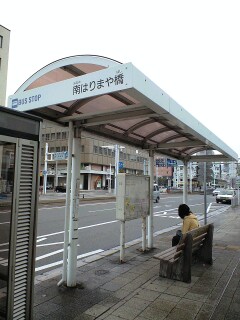 ・「南はりまや橋」というバス停は、“はりまや橋”のすぐ近くにあります。高知駅から“はりまや橋”までは、路面電車やバスに乗ると数分で行けます。
