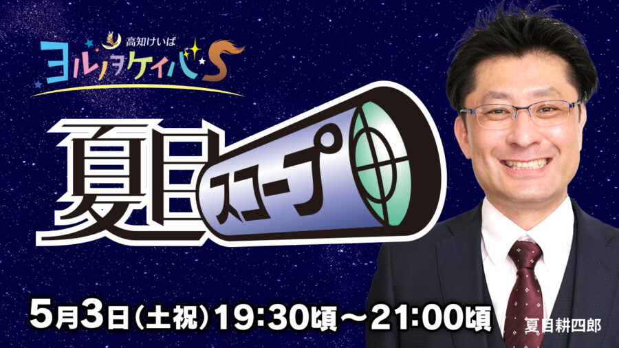 ヨルノヲケイバS~夏目スコープ~ 2025/4/30 2025/4/30 ヨルノヲケイバ ゆる~く、楽しく、ドキドキできる馬券予想とレース中継。みんなで高知けいばを楽しみましょう! ヨルノヲケイバS~夏目スコープ~【5/3(土祝)19:30頃~21:00頃】 5月3日は、ヨルノヲケイバでお馴染みの夏目耕四郎さんが出演する「ヨルノヲケイバS~夏目スコープ~」をライブ配信します。日々バージョンアップしている夏目スコープを駆使して、最終レース「一発逆転ファイナルレース」の攻略に挑みます。是非、高知けいばのYouTubeチャンネルを登録してお楽しみください!