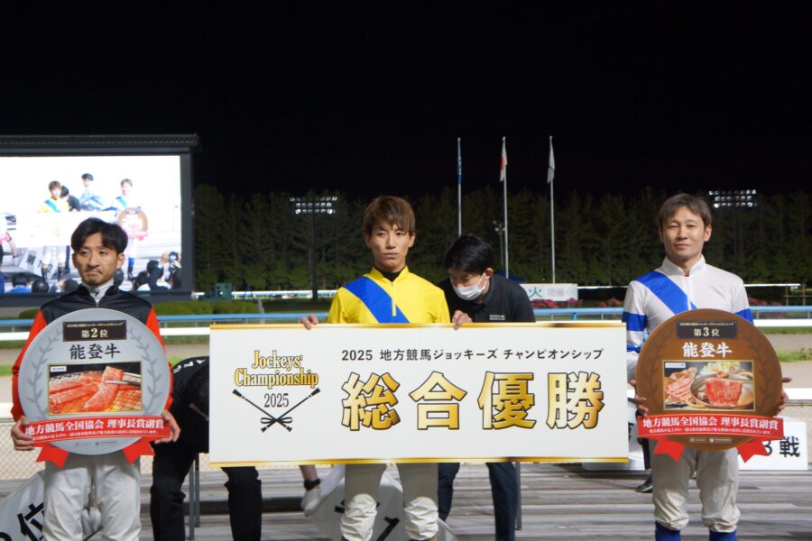 5月26日(月)、各地のリーディングジョッキーが地方競馬No.1の座を目指す『2025地方競馬ジョッキーズチャンピオンシップ』が金沢競馬場で行われました。高知からは赤岡修次騎手が出場し、総合3位の成績を収めました。