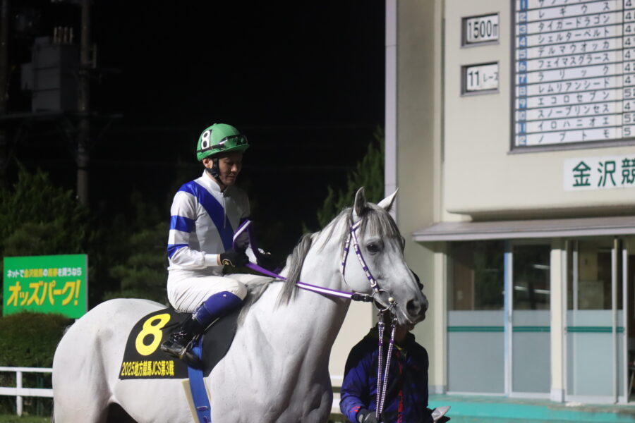 「2戦目では除外という残念なトラブルもありましたが、無理して馬が壊れてしまっては大変ですし、それも含めて競馬ですから。最終戦は手応えも良くて、4コーナーまわる頃には勝てるかなと感じていました。3位には入ることができたので、何とか爪痕は残せたかなと思います。金沢は今日が本格ナイター初日ということで、遅くまで残って応援してくれたファンの皆様にも感謝しています。」