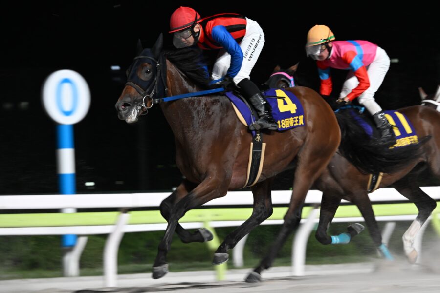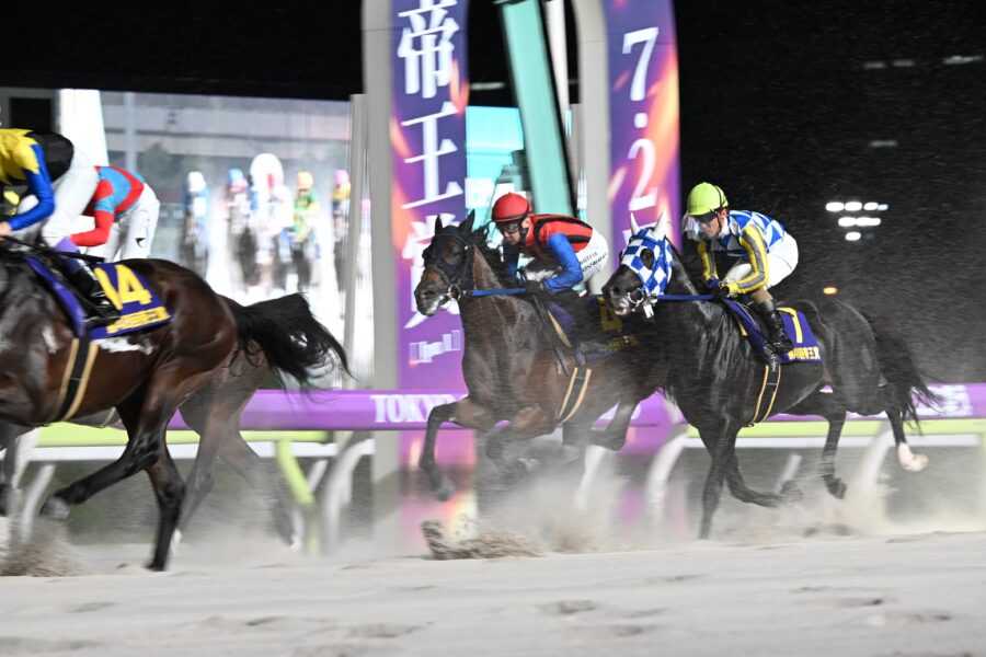 レースは、ミッキーファイト(JRA・C.ルメール騎手)、ヒーローコール(船橋・山中悠希騎手)らがリードし、シンメデージーは中団で進行。向こう正面で早めに抜け出したミッキーファイトが最後の直線で迫ったアウトレンジ(JRA・松山弘平騎手)をクビ差振り切って勝利しました。シンメデージーは最終コーナーから必死の追い上げを試みるも先頭集団の勢いは衰えず、9着の結果となりました。