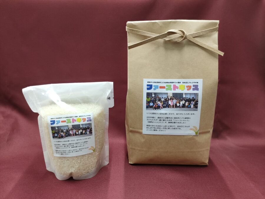 高知けいば所属騎手が、南国市の吉本さん、高知市こども劇場の子供たちと協同し、育てた新米「ファーストキッス」(赤岡修次騎手命名)。