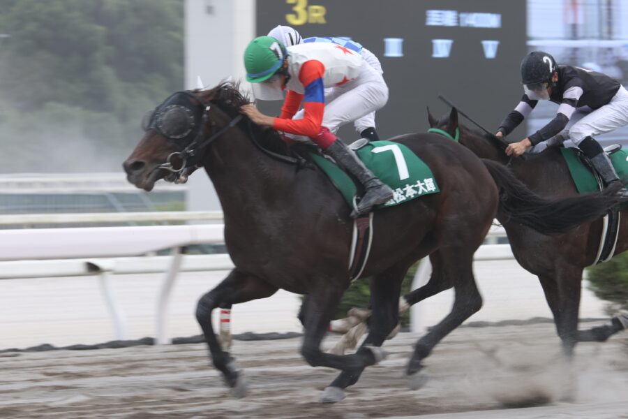 第2戦は、アキノスマート(土方颯太騎手・兵庫)が先行、エラボレート(髙橋愛叶騎手・兵庫)、ワクワクドリーム(塩津璃菜騎手・兵庫)ら兵庫勢が先団を形成。4コーナーからじわじわと位置取りを上げたオセアトップガン(松本大輝騎手・JRA)がゴール前で怒涛の末脚を見せ、逃げ切り勝ちを狙うアキノスマートを差し切って勝利しました。
