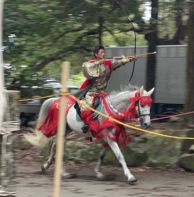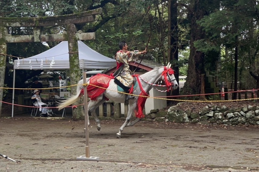 高知けいばの誘導馬「ジョーアラビカ」が流鏑馬デビュー 2025/10/5 今週の高知けいば, ブログ 10月5日(日)に開催された東洋町・野根八幡宮祭の「流鏑馬奉納」に、高知競馬場誘導馬のジョーアラビカ号が流鏑馬に参加しました。 流鏑馬には、ジョーアラビカを管理する石田侑奇さんが騎乗し、奉納演武を行いました。 石田侑奇さんのコメント「普段は誘導馬として頑張ってくれているジョーアラビカですが、今日は流鏑馬という大役を担う機会をいただきありがたく思います。初めての挑戦でしたが、無事成功することができてホッとしています。現地の人にも喜んでもらえたと思います。」
