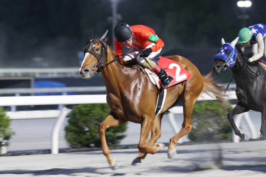 グレートヒエン号は2022年10月、船橋での初出走を勝利で飾り、7戦(2勝)を経て高知の雑賀正光きゅう舎所属馬となりました。