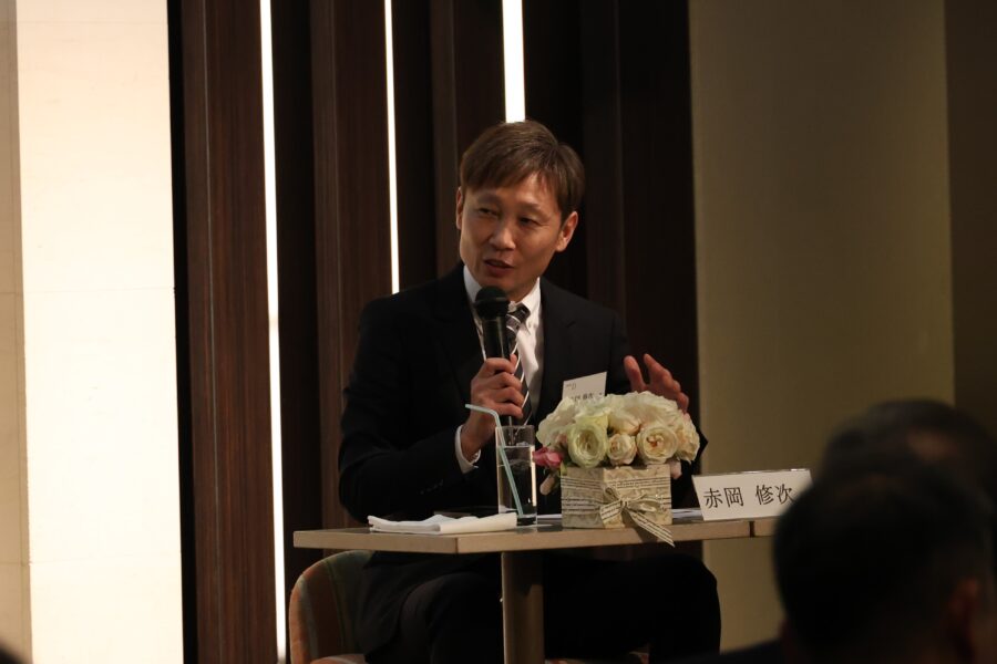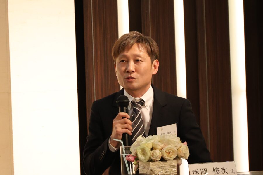 高知けいばが廃止寸前の危機的状況で、赤岡騎手が何を感じ、状況改善のためにどう立ち向かったか、またその中で生まれた多くの仲間との助け合いや、多くの関係者からの支え・協力のもと高知けいばが好調の波に乗るにいたった経緯などを語り、多くの出席者が対談に聴き入りました。