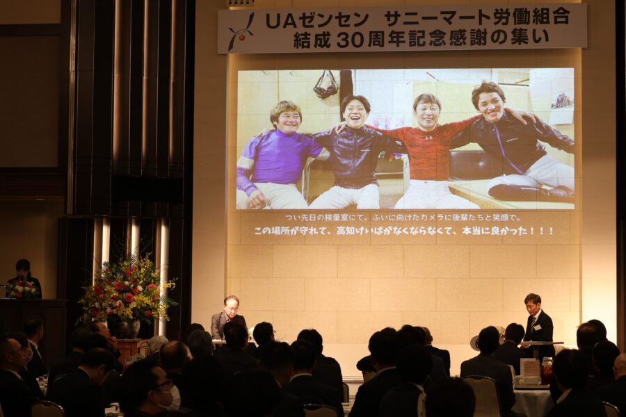 12月9日(火)城西館にて、高知県と愛媛県を中心に展開する地域密着型のスーパーマーケット・サニーマートの労働組合による「サニーマート労働組合30周年記念 感謝の集い」が開かれ、赤岡修次騎手がゲストとして招かれました。