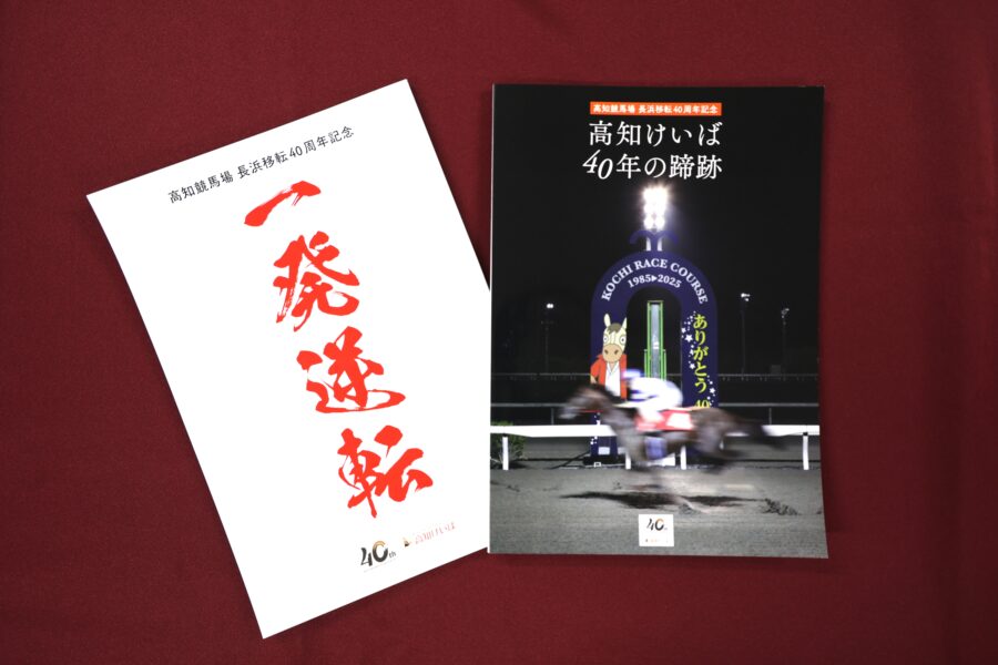移転40周年を記念して「高知競馬場 長浜移転40周年記念 高知けいば40年の蹄跡」を作成しましたので、高知競馬場・パルス宿毛・パルス藍住にて、キャッシュレス投票で高知けいばを100円以上購入されたお客様に進呈いたします。