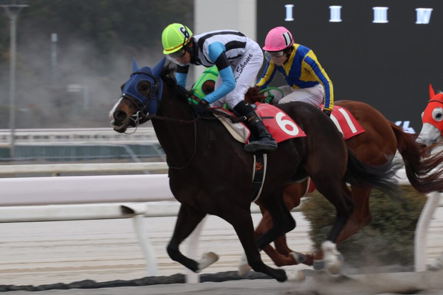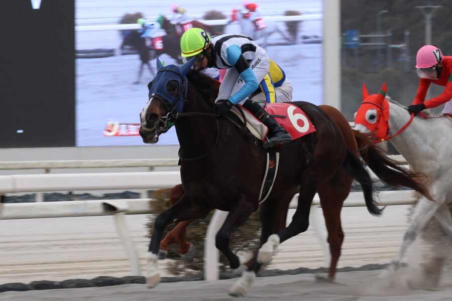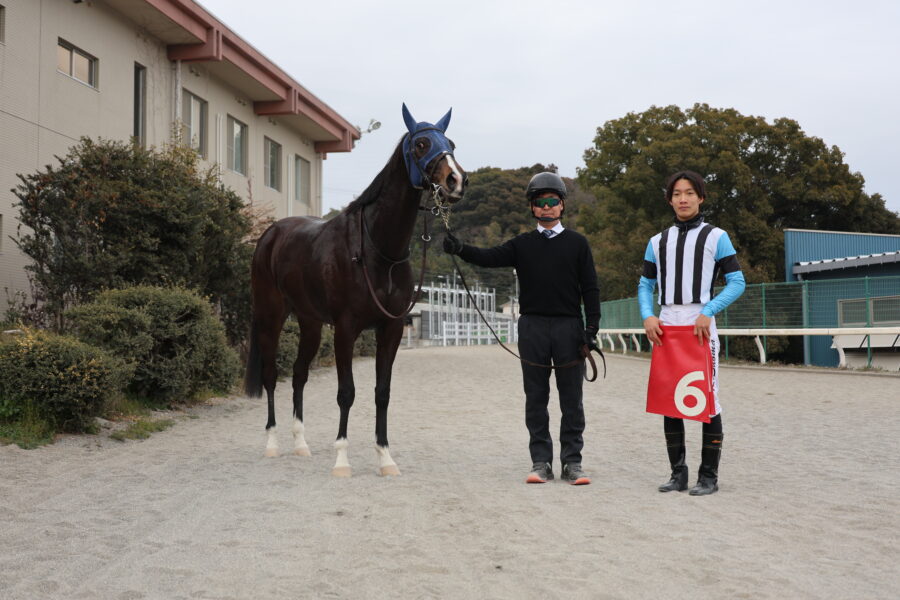 2月10日(火)[第15回高知競馬第5日]実施のJRA交流競走 足摺盃でJRAから参戦のフェミナンジェンヌ号(高橋一哉きゅう舎・加藤翔馬騎手騎乗)が見事初勝利を収めました。