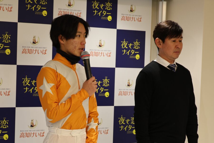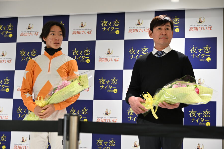 初コンビを組んだ加藤翔馬騎手は表彰式で「返し馬でもおとなしくて操作性も良く乗りやすい馬だと感じました。前半が前を楽させる展開になってしまって少ししんどかったですが、直線最後まで馬が頑張ってくれたので良かったです。」と語り、「フェミナンジェンヌも高知けいばもこれから頑張っていきますので、皆様どうか応援よろしくお願いします。」とファンにメッセージを残しました。
