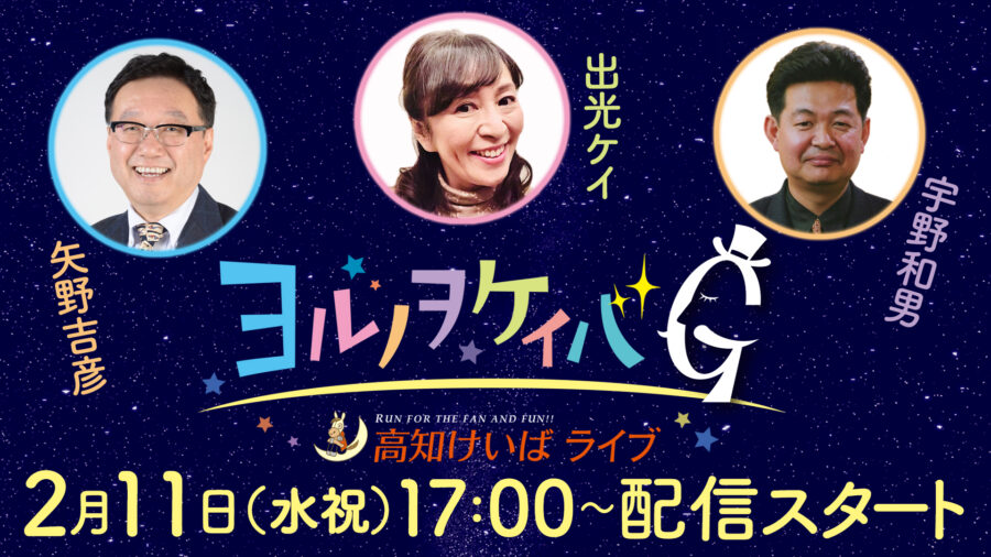 ヨルノヲケイバG~高知けいばライブ~ 2026/2/10 ヨルノヲケイバ ゆる~く、楽しく、ドキドキできる馬券予想とレース中継。みんなで高知けいばを楽しみましょう! ヨルノヲケイバG~高知けいばライブ~【2/11(水祝)】17:00~ 競馬界で長きにわたって活躍している方々が出演するヨルノヲケイバGを生配信。 競馬にまつわる思い出話やベテランならではの馬券予想を披露しながら、ゆる~い競馬番組を配信いたします。 是非、高知けいばのYouTubeチャンネルを登録してお楽しみください!