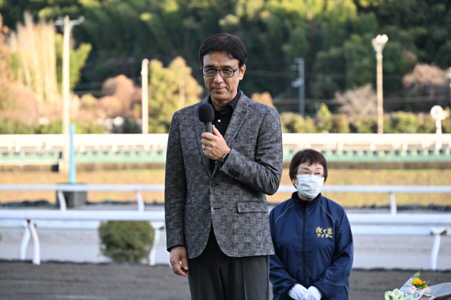 表彰式に登壇したダノンアンドレ号の馬主 株式会社ダノックス 統括マネージャーの岡田氏は「ダノンアンドレの母はダノンオスカル、父はダノンキングリーということで、ダノンアンドレは完全な自家生産馬であり、我々ダノックスの夢が乗っております。」とコメントを残しました。