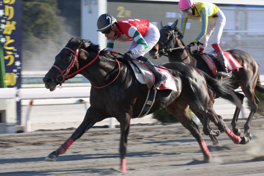 レースは先行争いを制したテセラグラディウス(加藤翔馬騎手)にフォレストターキン(畑中信司騎手)、アステリアート(JRA・川又賢治騎手)、らが続いてブルズアイプリンス(岡村卓弥騎手)は中団後方から。向こう正面からポジションを上げてきたオアシスアラン(JRA・松本大輝騎手)が直線半ばで先頭に立つも、後半強力な追い上げを見せたブルズアイプリンスが大外から見事な末脚で差し切って勝利。3着にはフルールサシェ(永森大智騎手)が入って上位をJRA勢が独占の結果となりました。