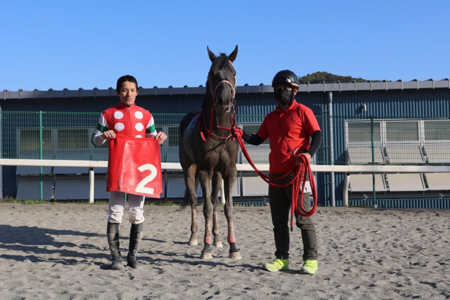 表彰式に登壇した岡村卓弥騎手は「厩舎スタッフの皆様のおかげで勝つことができました。初ダートということもあって、最初砂を嫌ってるようなところがあったんですが、かぶらないところに出してからはすごくいい脚を使ってくれたので、中央に帰ってからも活躍してくれる事を祈っています。」とコメントを残しました。