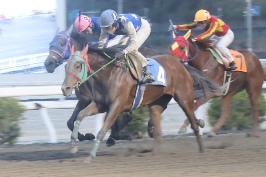 [令和7年度 第19回高知競馬第3日]第6競走において、林 謙佑騎手騎乗のハンドレインジ号が勝利し、管理する國澤輝幸調教師が地方競馬通算1100勝を達成しました。