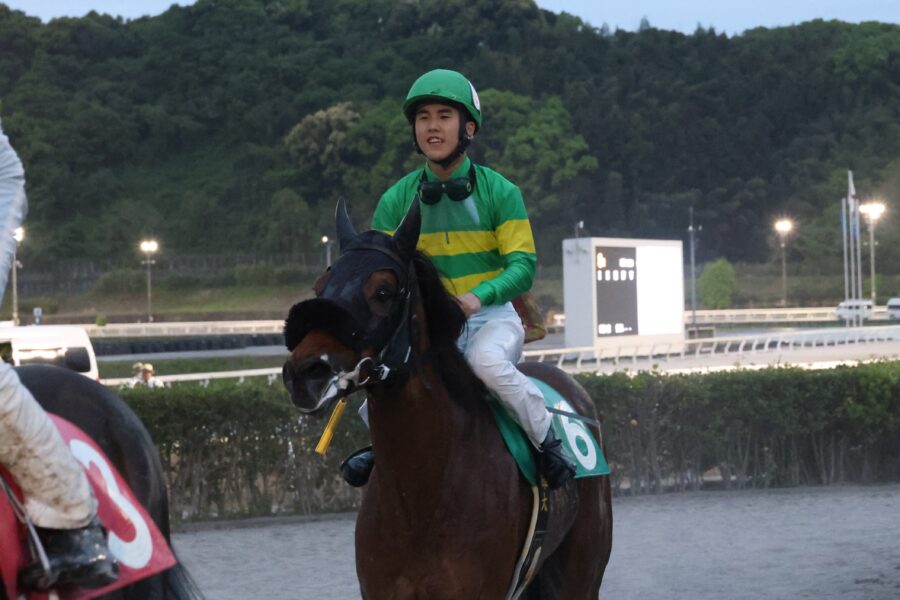 4月19日(日) 令和8年度第1回高知競馬第6日第8競走で、ノイヤー号(牝5・平 和人きゅう舎)に騎乗した塚本直之騎手(目迫大輔きゅう舎所属)が、初勝利をあげました。