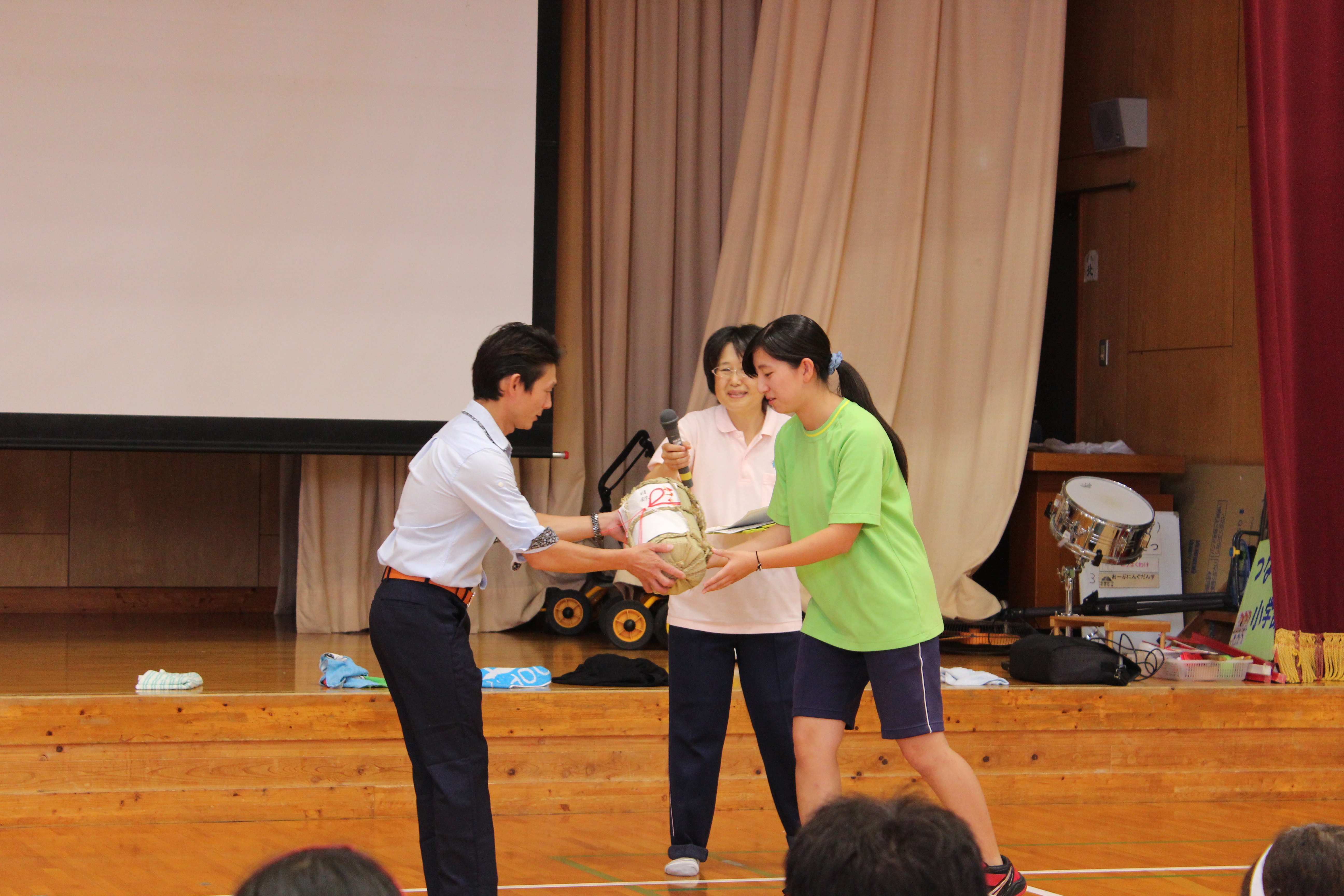 高知市立高知特別支援学校に新米「ファーストキッス」を寄贈しました!! 2017/9/19 今週の高知けいば, ブログ 今年も倉兼騎手会長、上田騎手、吉本さん、高知市こども劇場手嶋理事長、高橋さんとともに高知市立高知特別支援学校を訪問し、新米「ファーストキッス」を寄贈しました。 学校のみなさんからは、お返しに素敵なプレゼントをいただきました。