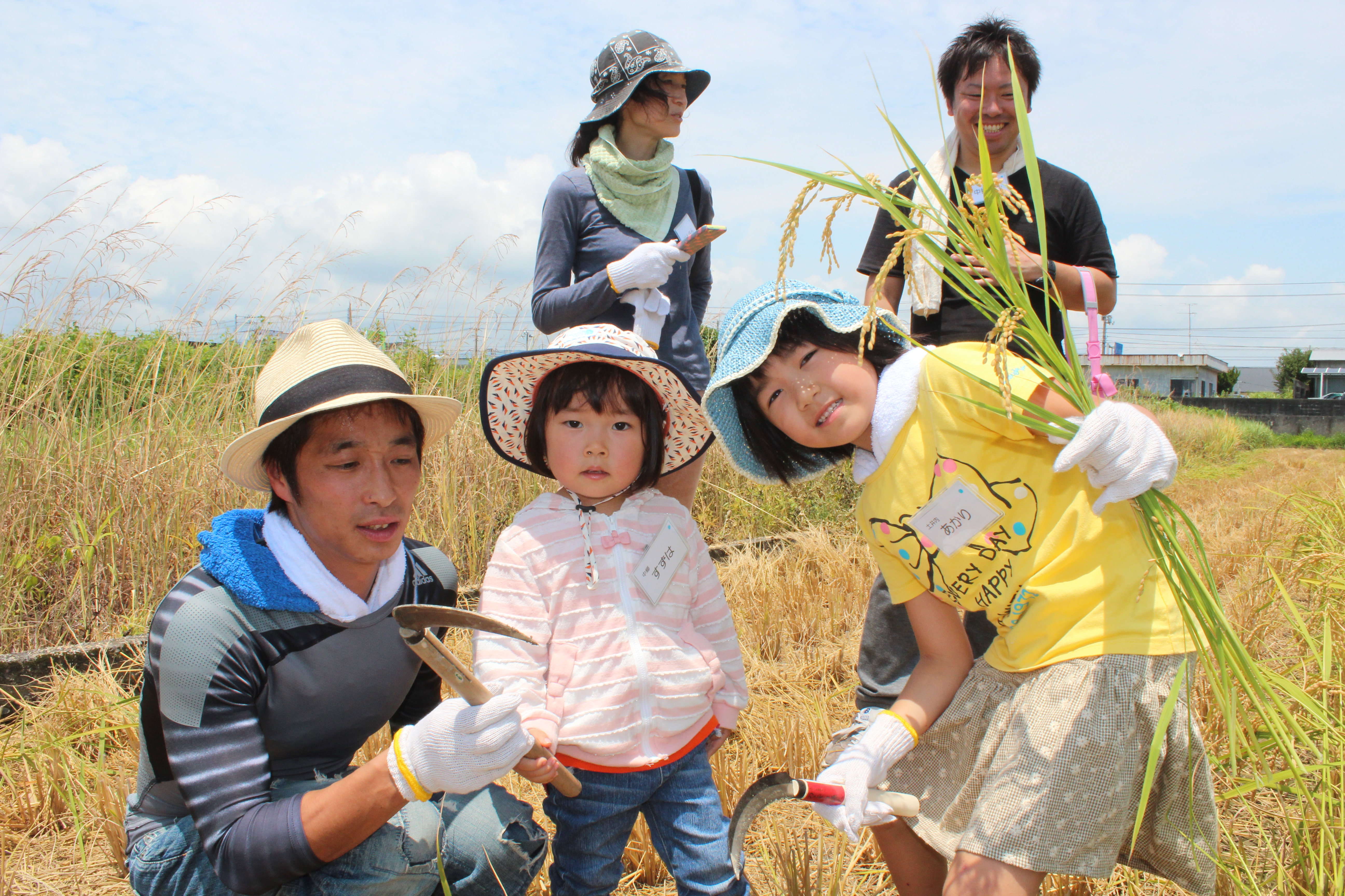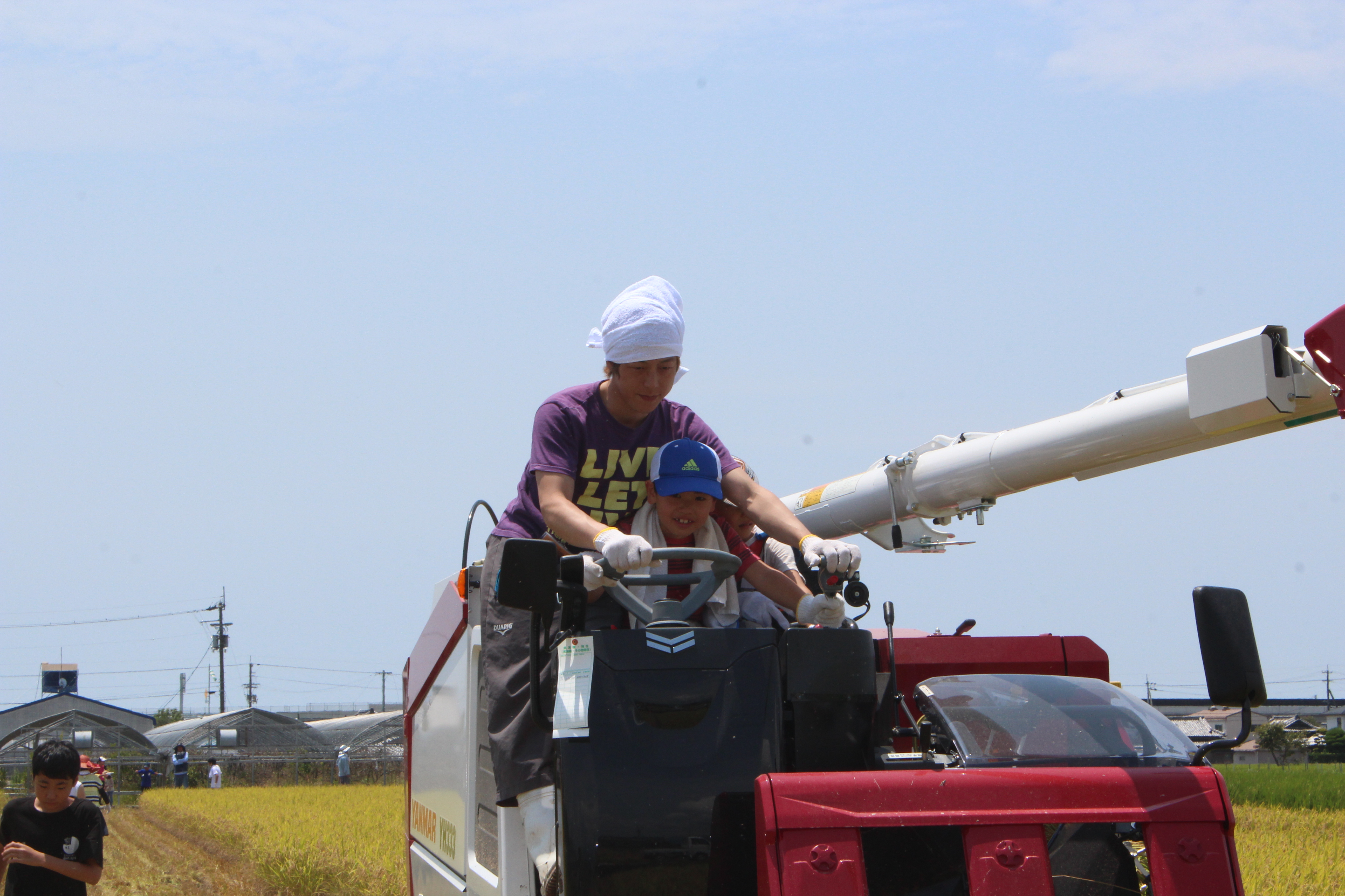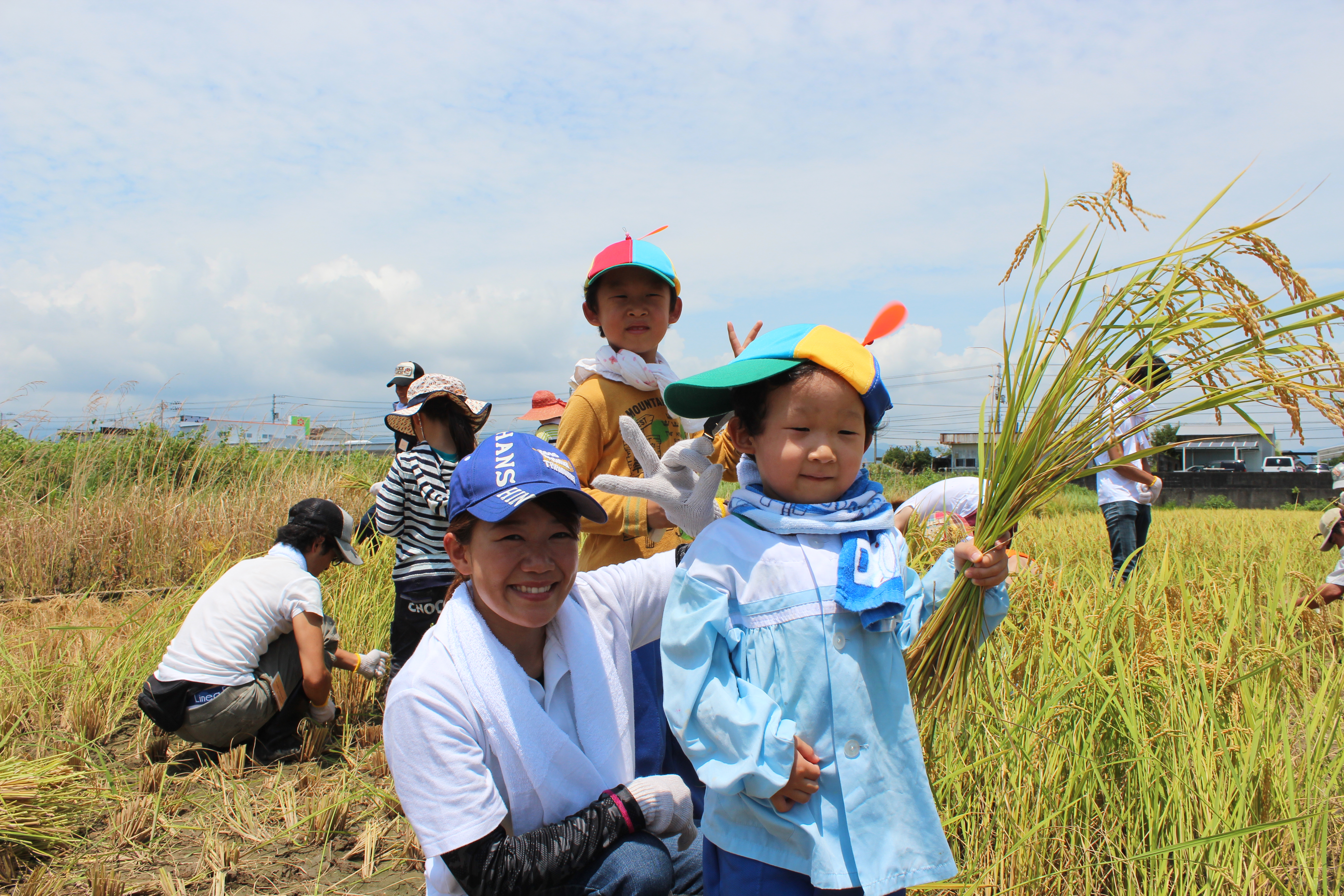 騎手と子どもの稲刈り体験2016 2016/8/4 今週の高知けいば, ブログ 7月27日に今年もすっかり恒例となりましたファーストキッス収穫祭が南国市農家の吉本さんの田んぼで行われました。 4月に高知けいば所属騎手と高知市こども劇場の子どもたちが一緒に植えた苗が立派な稲穂になっていて、手刈りとコンバインでどんどん刈っていきます。 今年も天気は良かったのですが、ホントに暑い!!でも猛暑の中、騎手と子どもたちは元気いっぱいでした。