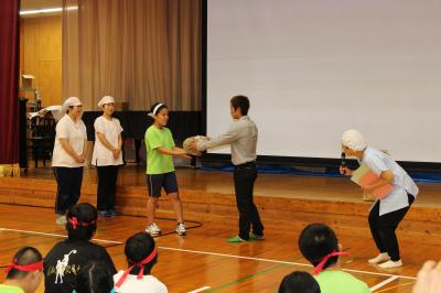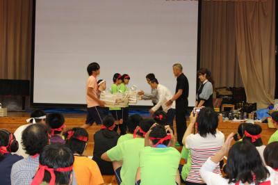 高知市立高知特別支援学校に新米「ファーストキッス」を寄贈させていただきました 2015/9/25 今週の高知けいば, ブログ 騎手と子どもたちが田植え、稲刈りをした新米「ファーストキッス」。9月24日に上田騎手、西川騎手、南国市農家の吉本さん、こども劇場の高橋さんとともに高知市立高知特別支援学校様を訪問し、とれたての新米を寄贈させていただきました。新米は給食で生徒さんに振舞われるそうです。生徒さん達からは手作りの木工製品をお礼にいただきました。ありがとうございました。<訪問の様子> みんな「ファーストキッス」を食べて、元気に育ってくださいね。