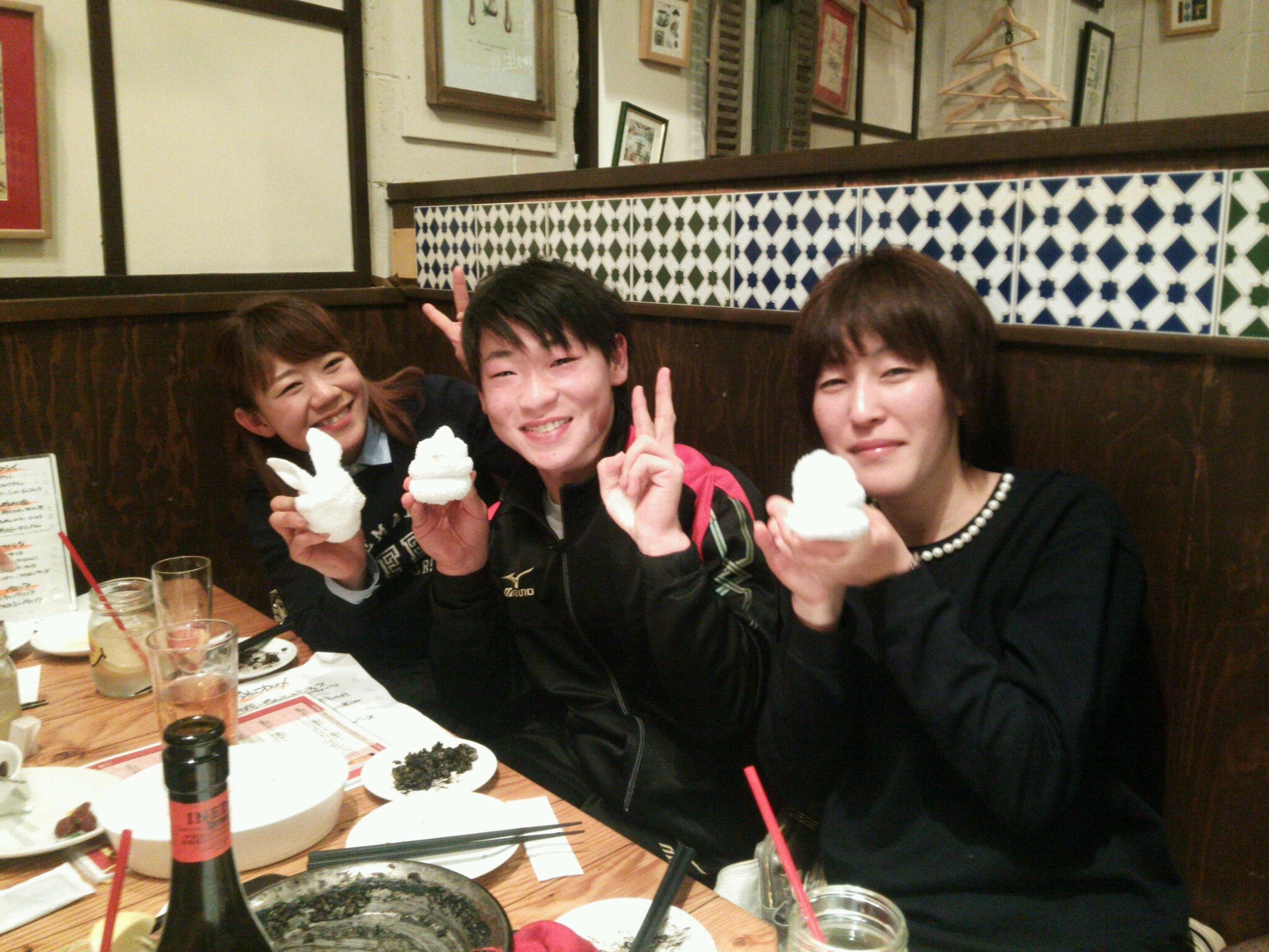 別府真衣と下村瑠衣の「レディス&ヤングジョッキーズ2015」 2015/2/1 今週の高知けいば, ブログ この日のインタビュアー・プレゼンターを務めたのは地方競馬通算626勝の女性騎手最多勝記録を持つ宮下瞳元騎手(右)女性騎手たちの憧れであり目標である彼女の問いに別府騎手も力強く抱負を述べましたレース後は(左から)競艇の宮下元胤選手、笠松リーディング吉井友彦騎手、金沢のスーパールーキー中島龍也騎手とお食事手羽先や名古屋コーチンのお鍋を囲んで、楽しい時間を過ごしました中島騎手と盛り上がる別府・下村両騎手。中島騎手、新人王への参戦もお待ちしています