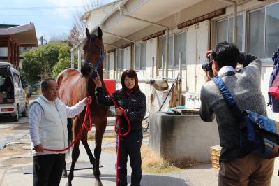 大忙しです。 2014/3/5 今週の高知けいば, ブログ JRA桜花賞トライアル「チューリップ賞(GⅢ)」にクロスオーバー号で出走予定の別府真衣騎手。地方所属女性騎手としては15年ぶりとなるJRA重賞挑戦で注目を集めており、取材攻勢に大忙しです。 今日は地元高知新聞社の取材を受け、クロスオーバー号、別府真司調教師とともに笑顔でカメラに収まりました。チューリップ賞はゲートインまであと3日です。なお、記事は6日もしくは7日の高知新聞朝刊に掲載予定です。是非ご覧ください。