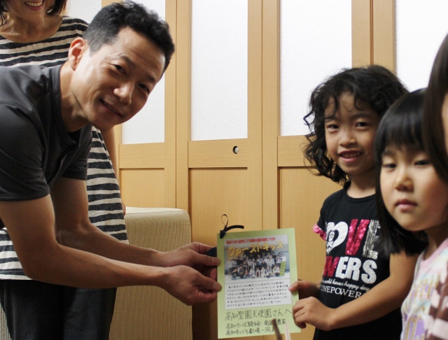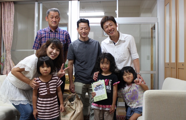 新米「ファーストキッス」を寄贈させていただきました 2013/9/3 今週の高知けいば, ブログ 高知けいば所属騎手が、親交の深い南国市農家の吉本様、高知市こども劇場様とともに、子ども達と一緒に収穫した新米「ファーストキッス」。 この新米づくりに携わった全ての者の「社会に役立つ活動をしたい」という想いがきっかけとなって、今日は西川騎手、赤岡騎手、吉本さん、こども劇場高橋さんとともに高知市の高知聖園天使園様を訪問し、新米「ファーストキッス」を寄贈させていただきました。<訪問の様子> また、来週9日(月)には、高知市立養護学校様への寄贈を予定しています。
