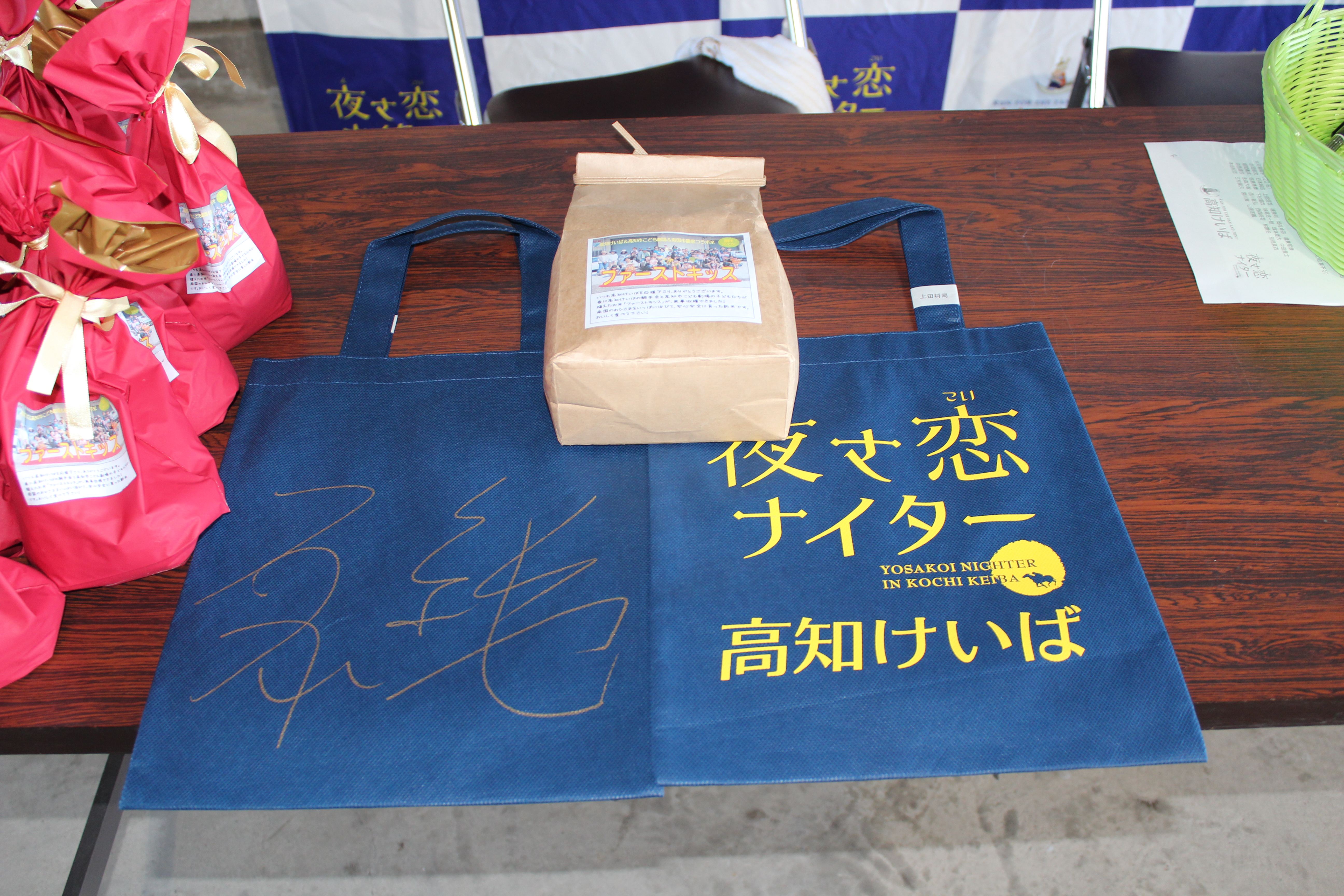 高知競馬場、郵送及び応募フォームによる応募ともに、当選者には「ファーストキッス(約2㎏)」&応援騎手サイン入りエコバッグをプレゼントします。