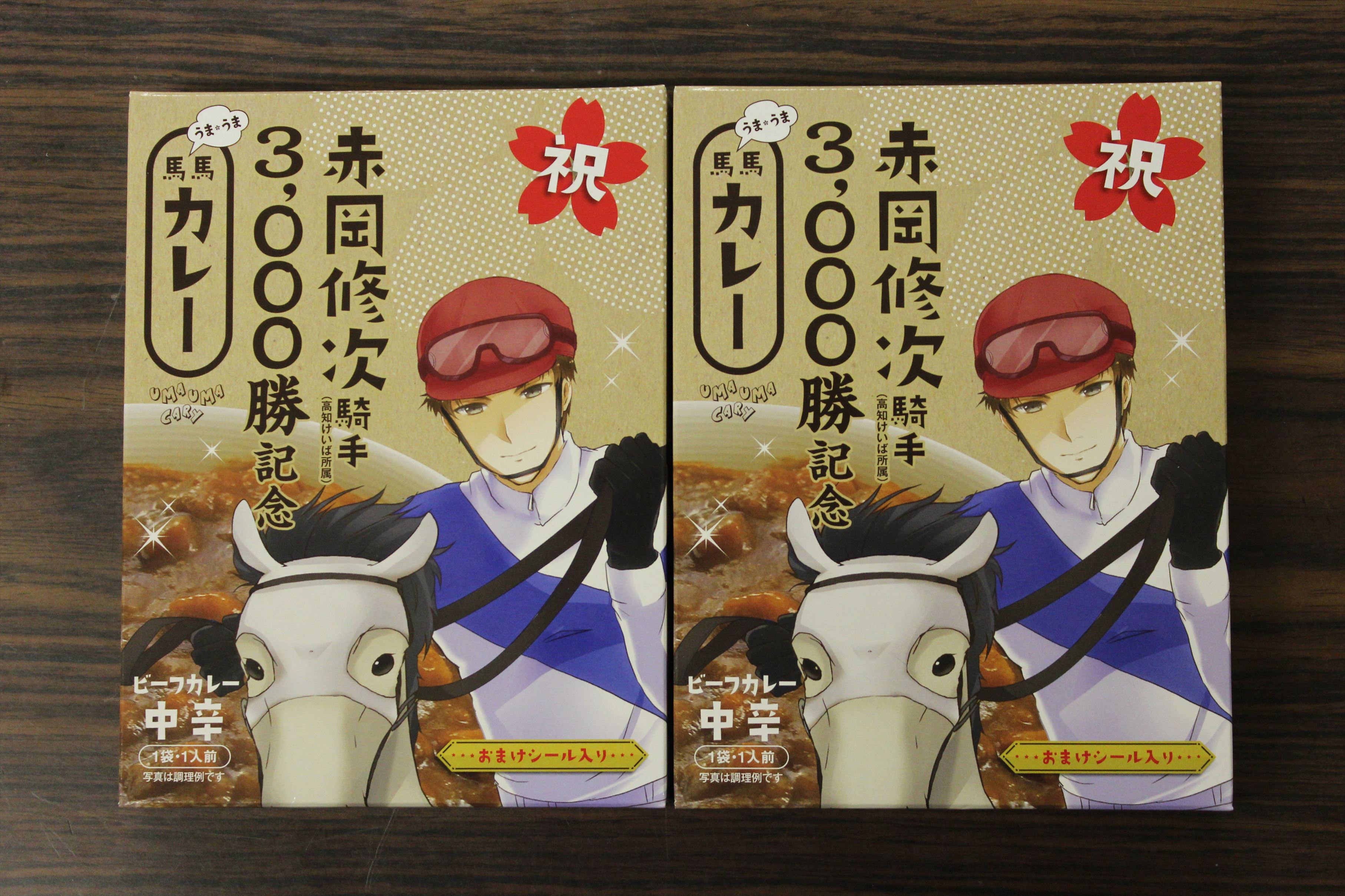 高知けいばでは初となる大記録を記念して、オッズ・パーク株式会社に協賛をいただき「赤岡修次騎手3,000勝記念カレー」を作成しました!