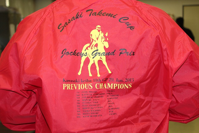「佐々木竹見カップ フードインジャンパー」を当日本場にお越しの方に抽選でプレゼント! 2013/1/24 イベント情報 「第11回佐々木竹見カップジョッキーズグランプリ」(2013年1月29日(火)。川崎競馬場)開催記念の「佐々木竹見カップ フードインジャンパー」を、当日本場にお越しの方(5名様)に抽選でプレゼントします。 ○抽選方法(本場4階特別観覧席中央付近にて行います) ◆応募券配布(先着100名様) 12:00~ ◆応募方法 16:00までに応募箱に投函 ◆当選発表・賞品交換 16:15~