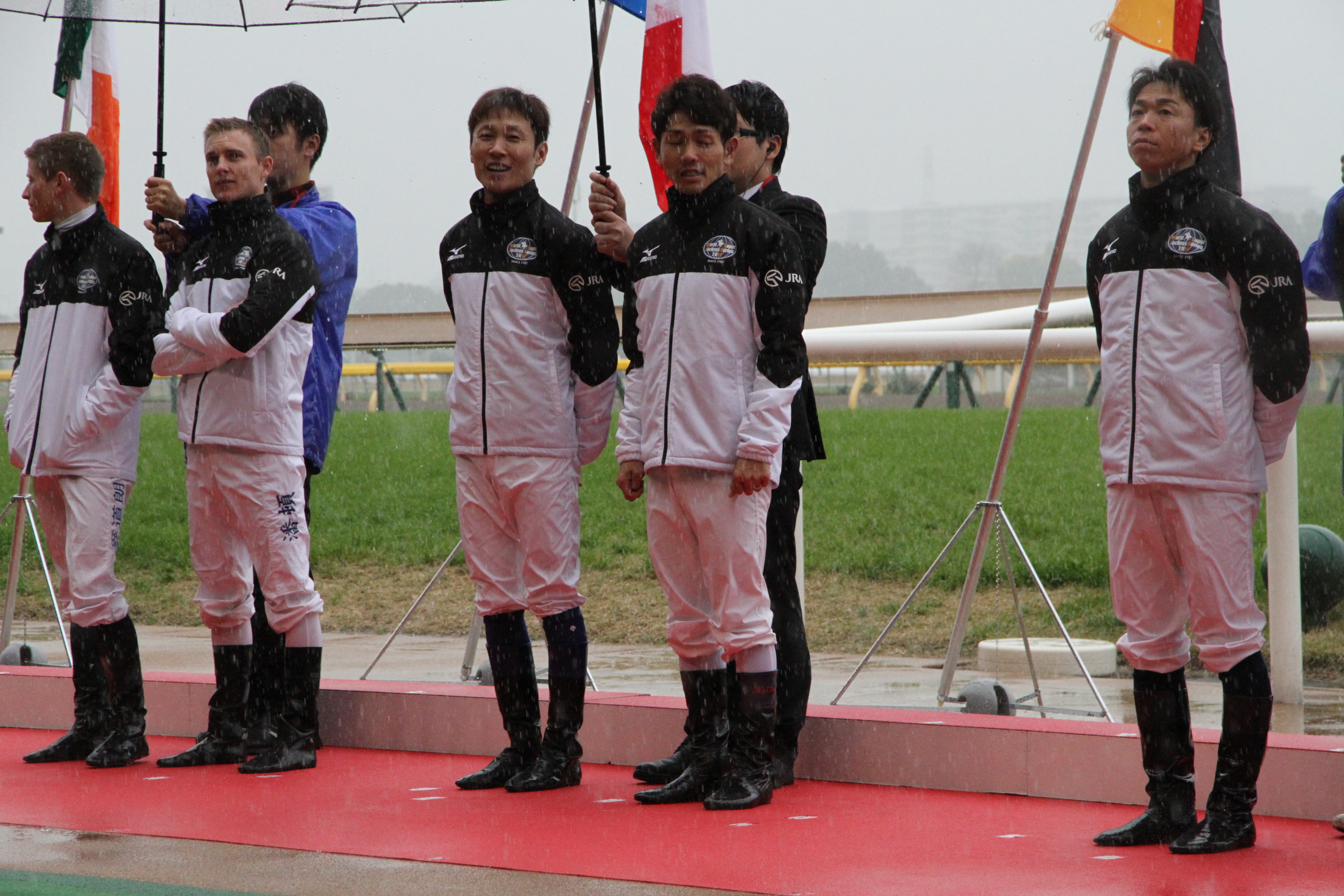 開幕セレモニー。旧知の戸崎騎手の隣でにこやかな赤岡騎手。(写真提供;NAR)![]()