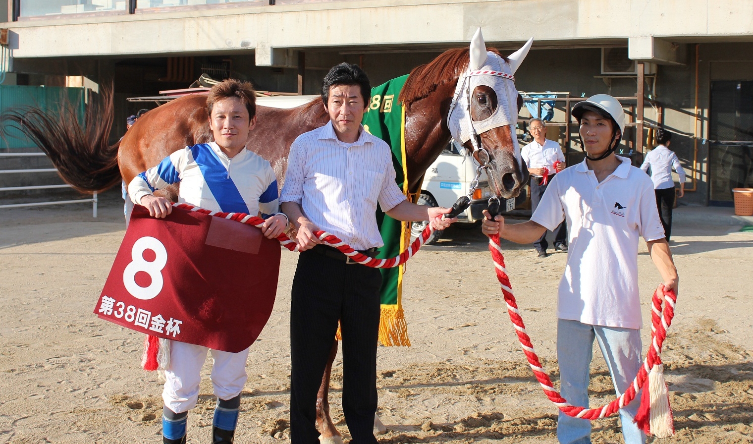 第38回金杯 コスモワッチミー優勝! 2012/8/19 競走情報, 遠征 平成24年8月19日(日)福山競馬場で行われた重賞競走「中国・四国地区交流 第38回金杯」におきまして、赤岡修次騎手騎乗のコスモワッチミー(牡4 田中守厩舎)が優勝しました!