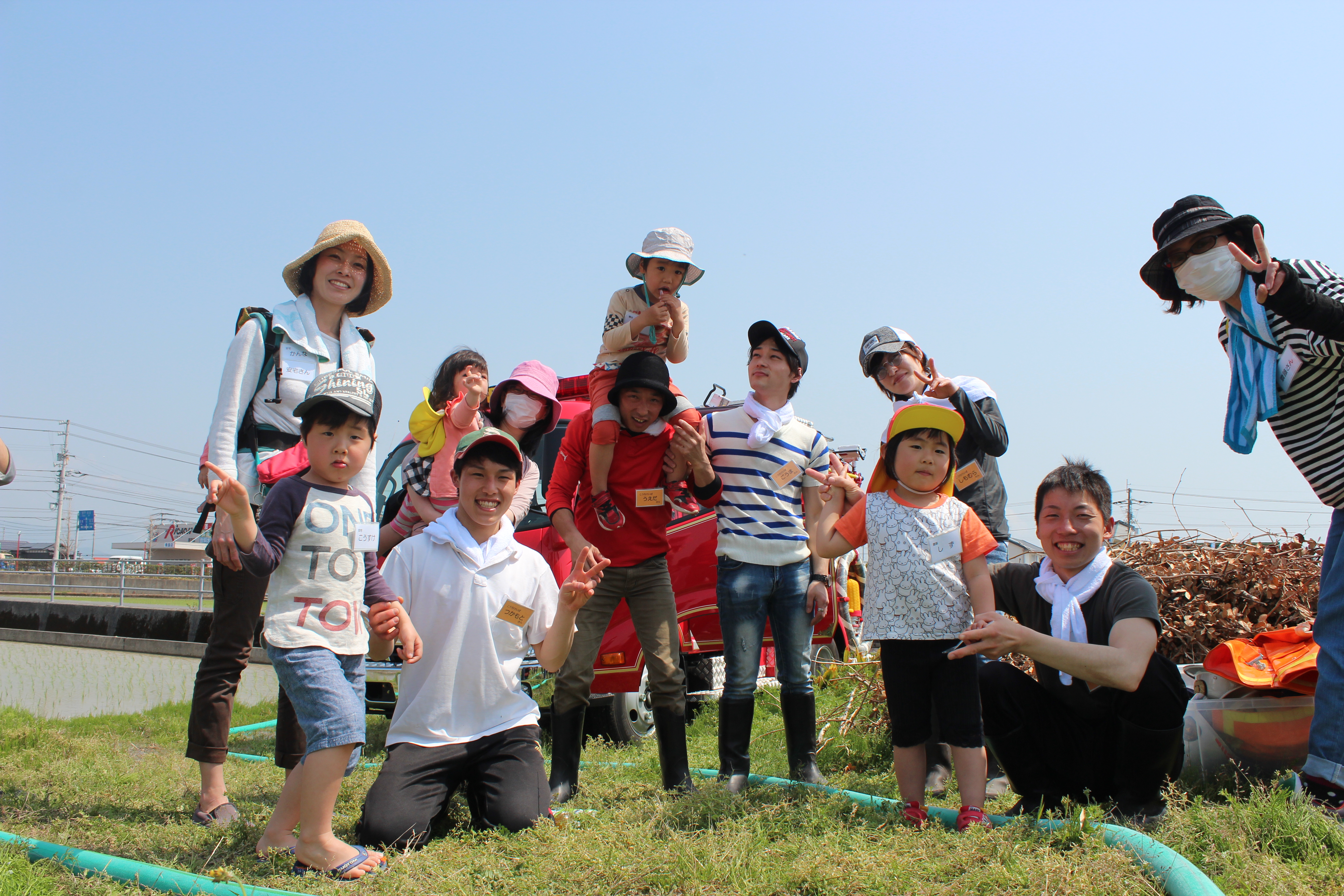 騎手と子どもの田植え体験2018(パート1) 2018/4/3 今週の高知けいば, ブログ 4月3日(火)、今年で6回目をむかえる「騎手と子どもの田植え体験」が、気持ちのいい春風の吹くなか行われました。 南国市の吉本正仁さんの田んぼで,騎手と高知市子ども劇場の子供たちが3グループに分かれ,手植えと田植機に乗っての田植え体験、南国市消防団・消防署のご協力による放水体験をしました。 騎手・子ども達ともに田んぼに足を取られながら田植えをしたり、放水体験を楽しんでいました。 全参加者で集合写真 手植体験