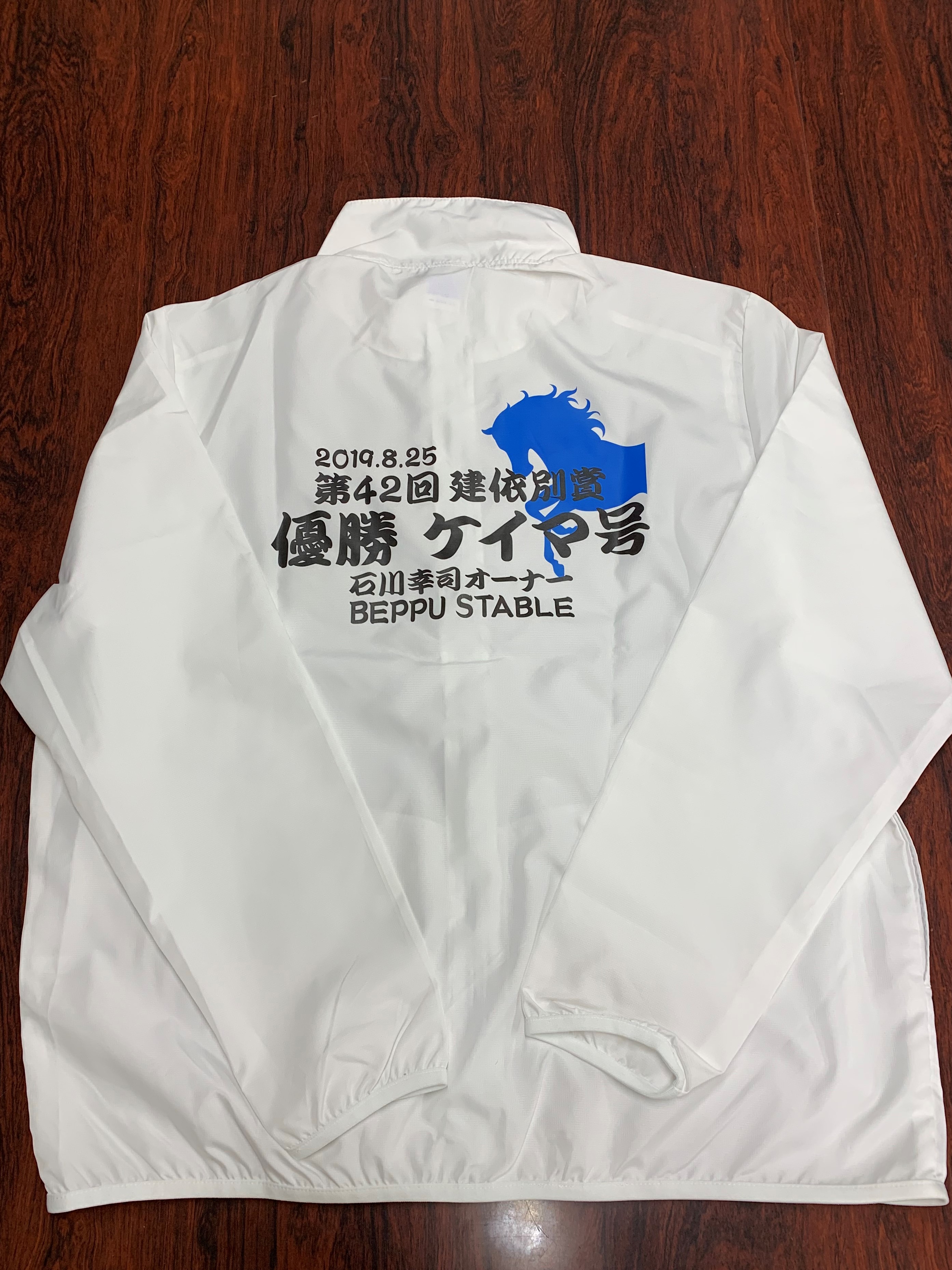 8月25日に「第42回 建依別賞」を制したケイマ号のオーナーである石川幸司氏より、記念のウインドブレーカーをいただきましたのでファンの皆様にプレゼントいたします!