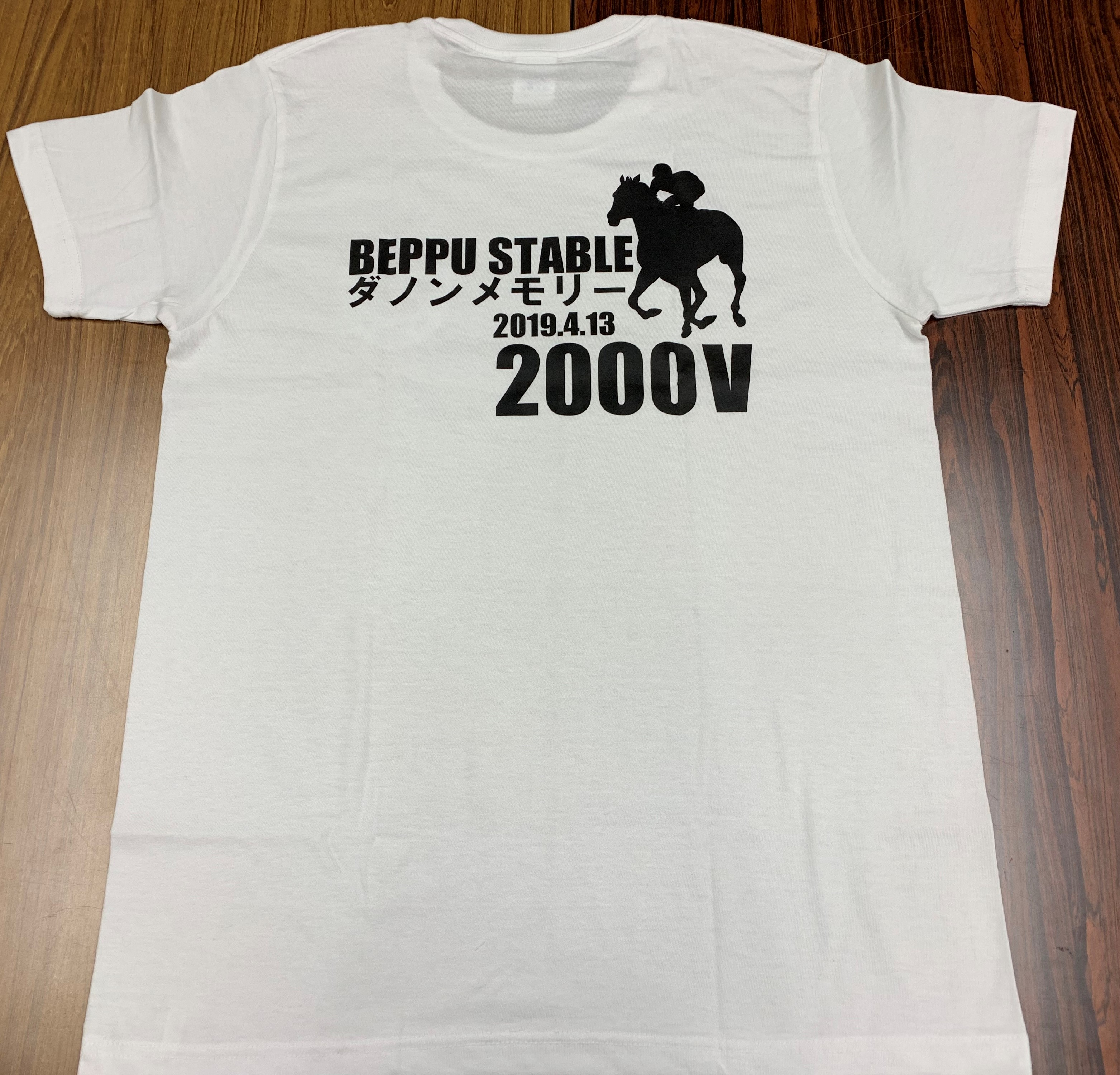 4月13日に地方競馬通算2,000勝を達成された別府真司調教師よりファンの皆様に記念Tシャツ(酒井孝敏オーナー作製)をいただきましたので、10名の方にプレゼントします。サイズはM・L各5枚あります。