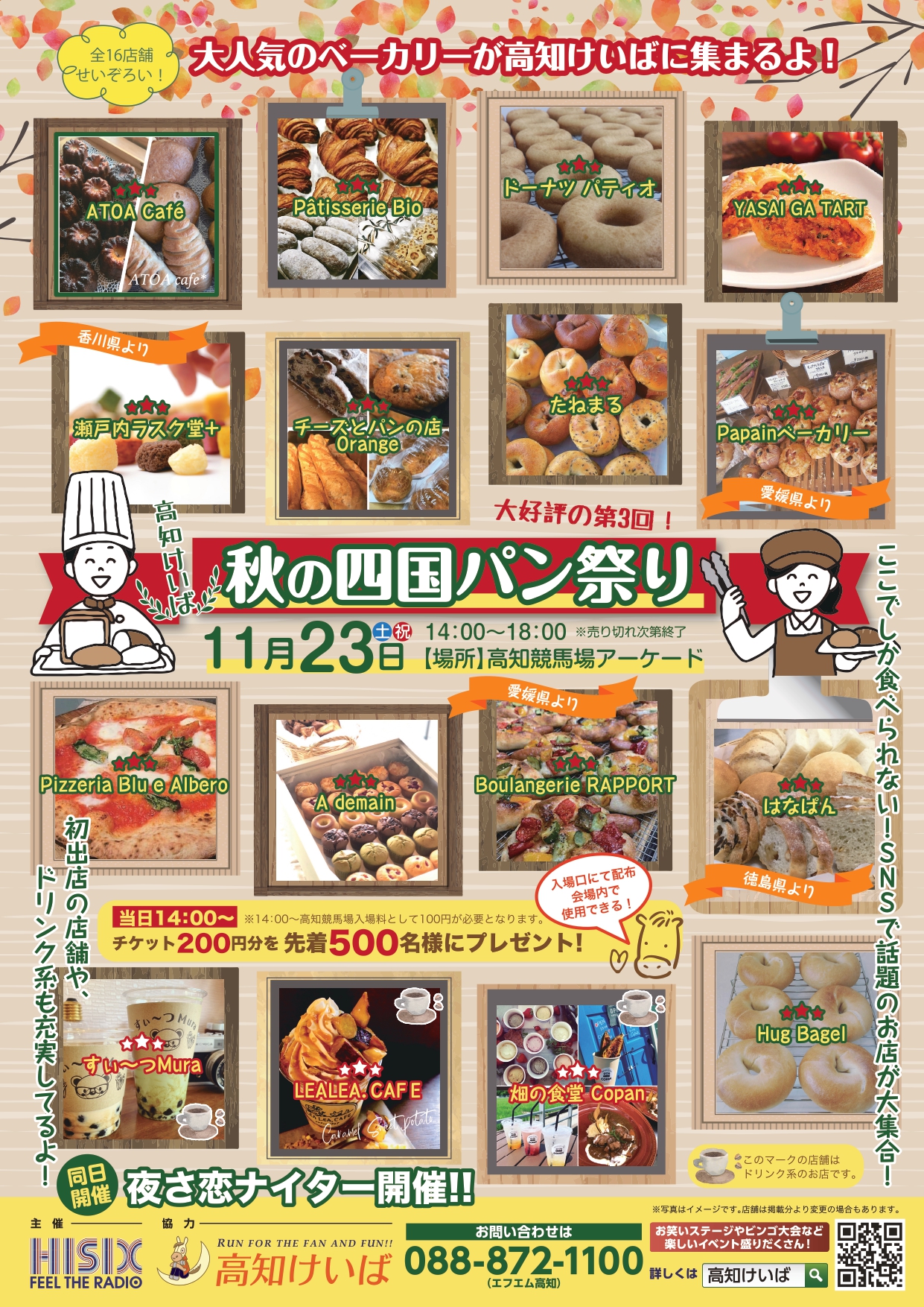 11月23日(土・祝)は高知競馬場で、「高知けいば秋の四国パン祭り」を開催します!