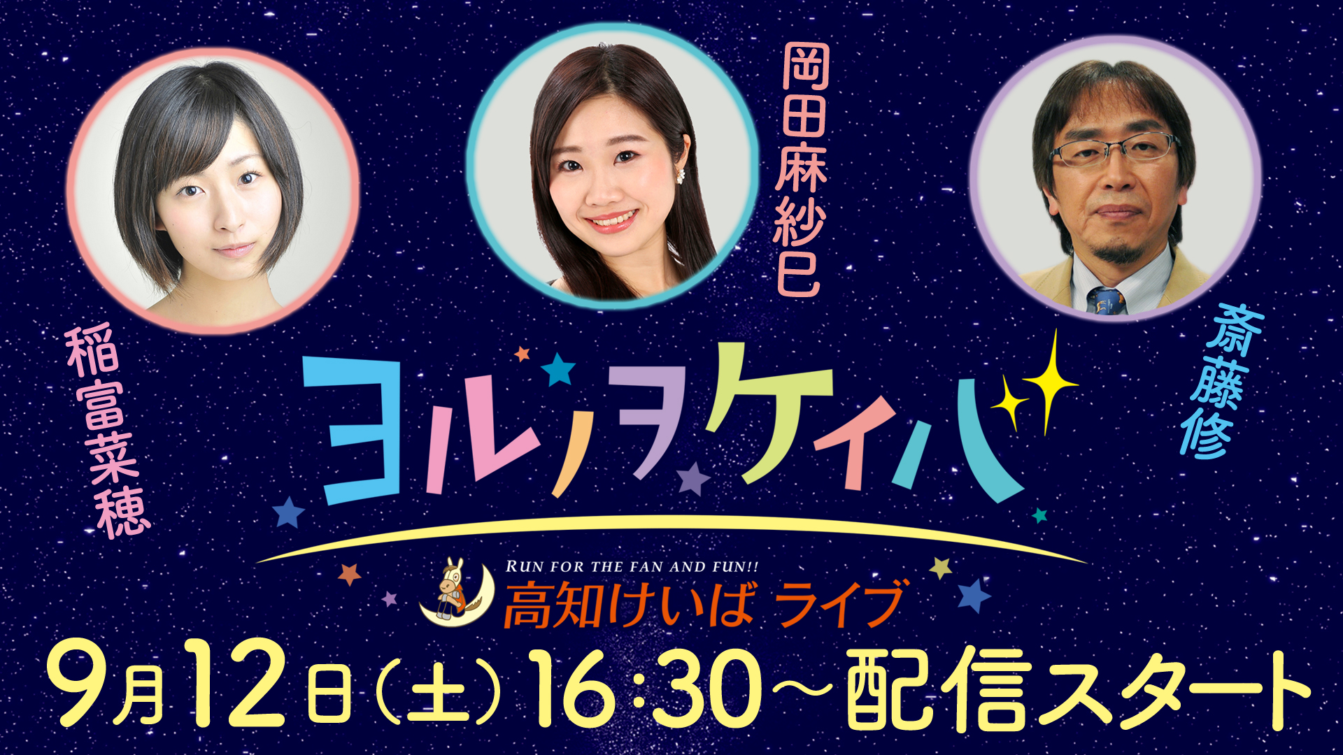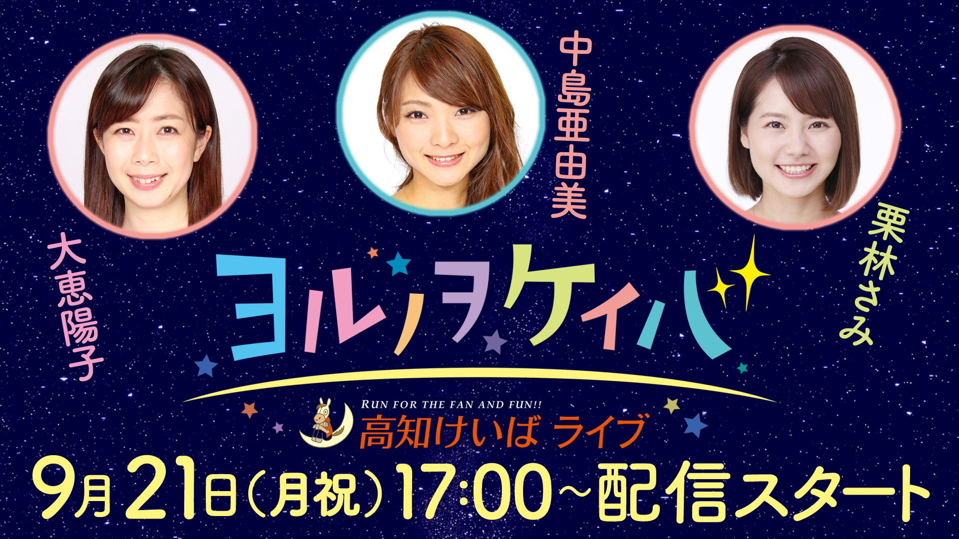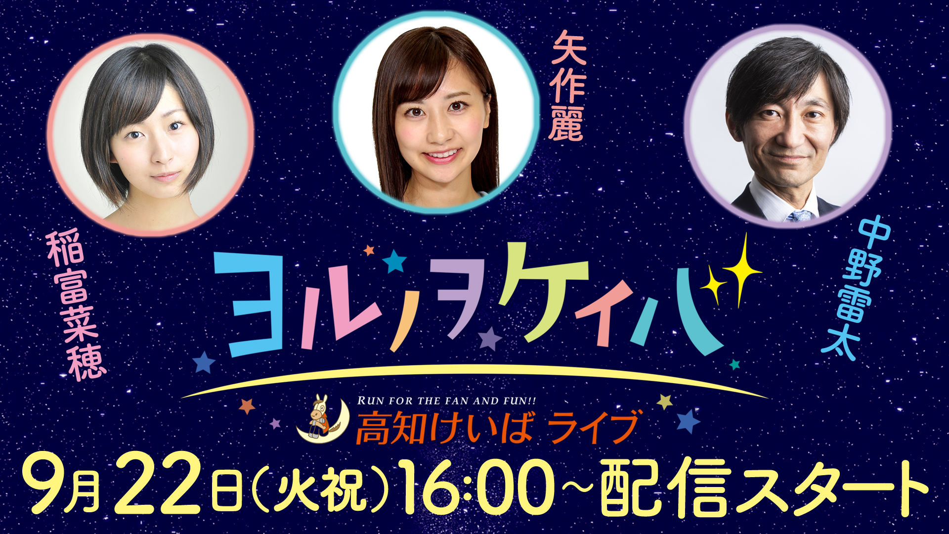 9月のヨルノヲケイバ~高知けいばライブ~ の出演者が決まりましたのでお知らせいたします。