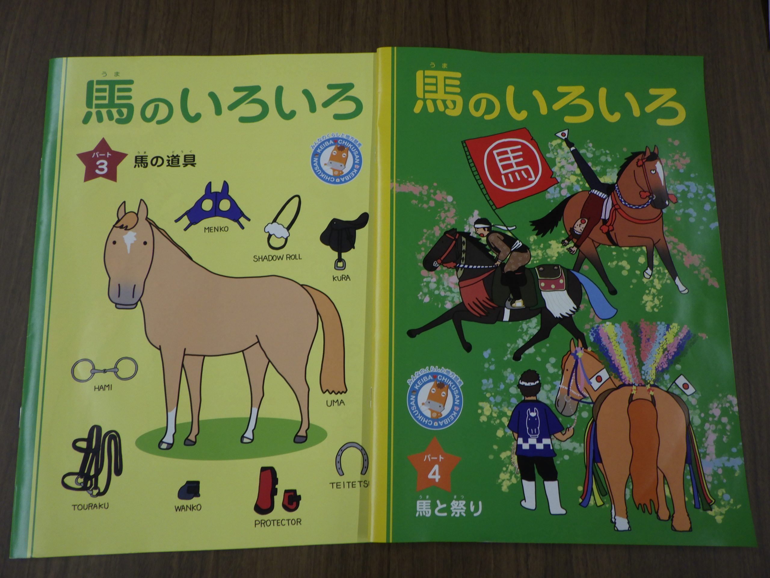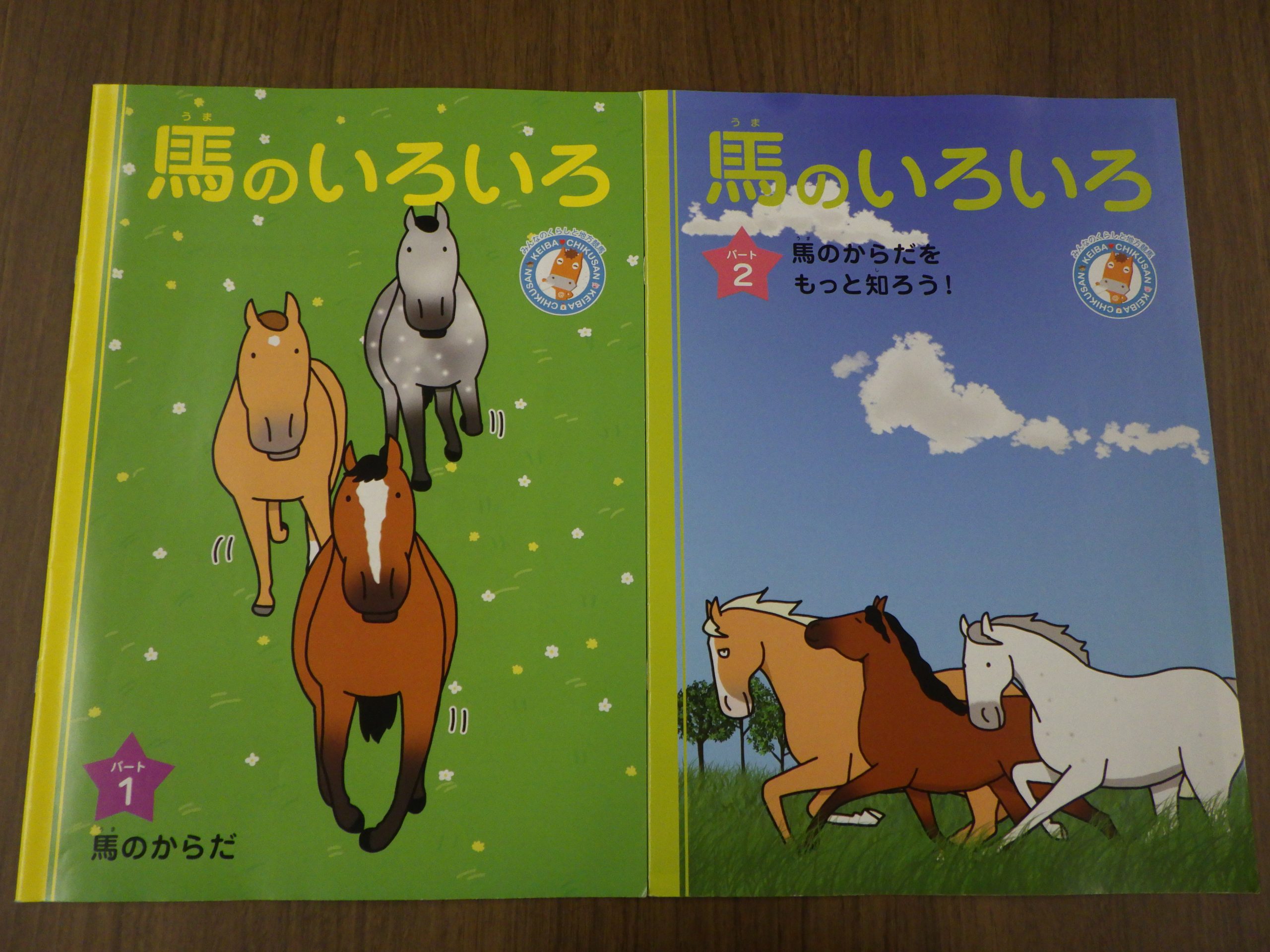 馬のからだのことや競馬で使う馬具のことを、かわいいイラスト付きで解説している冊子「馬のいろいろ①~④」。高知競馬場内に設置しています。オールカラーで、説明文には、すべてルビがついているので、お子様にもおススメです!ご自由にお持ち帰りください。