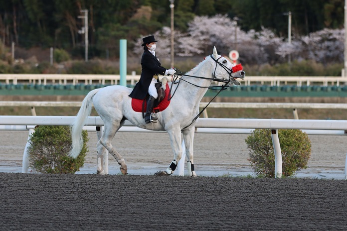 今年4月からは、ウエルカムホースとして第1競走前のパドックで、来場されるお客様をお迎えしており、その愛らしい様子が人気で、亡くなる直前の5月22日(日)にも、元気にお客様をお迎えしていました。
