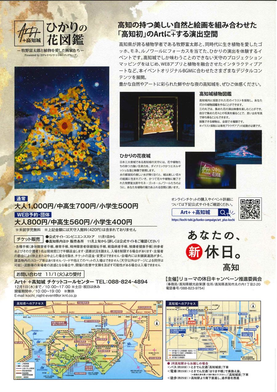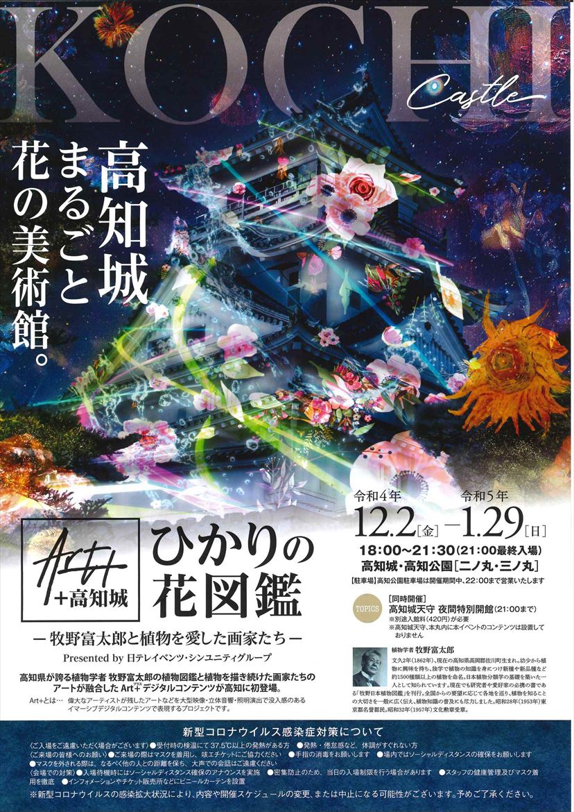 令和5年1月15日(日)以降に、高知競馬場内のキャッシュレス投票で高知けいば及び地方競馬を1,000円以上購入された方に、高知城で開催されている「Art+高知城 ひかりの花図鑑」の入場チケットをプレゼントいたします。