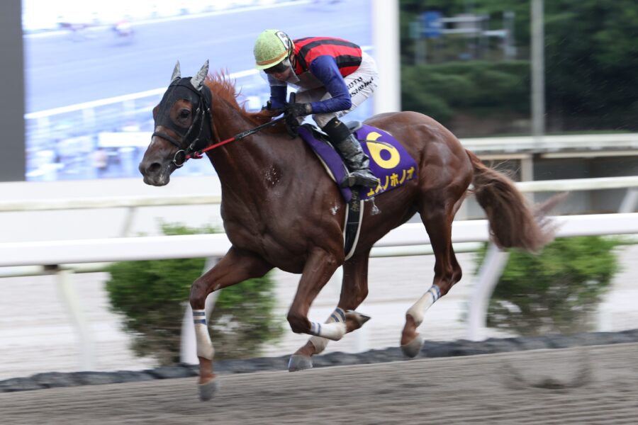 レース序盤、マリンジェミナイ(岡遼太郎騎手)が先頭に立ち、ハチキンムスメ(上田将司騎手)、ストロベリーツー(畑中信司騎手)らが続いて先団を形成、大きく出遅れたユメノホノオ(吉原寛人騎手)は最後方からのスタートとなりました。向正面からポジションを上げ、悠々と先頭を走るユメノホノオ。3コーナーすぎ、1馬身差まで迫ったデステージョを直線で凌いだユメノホノオ、1.5馬身差で勝利し、見事高知三冠を達成。